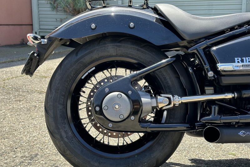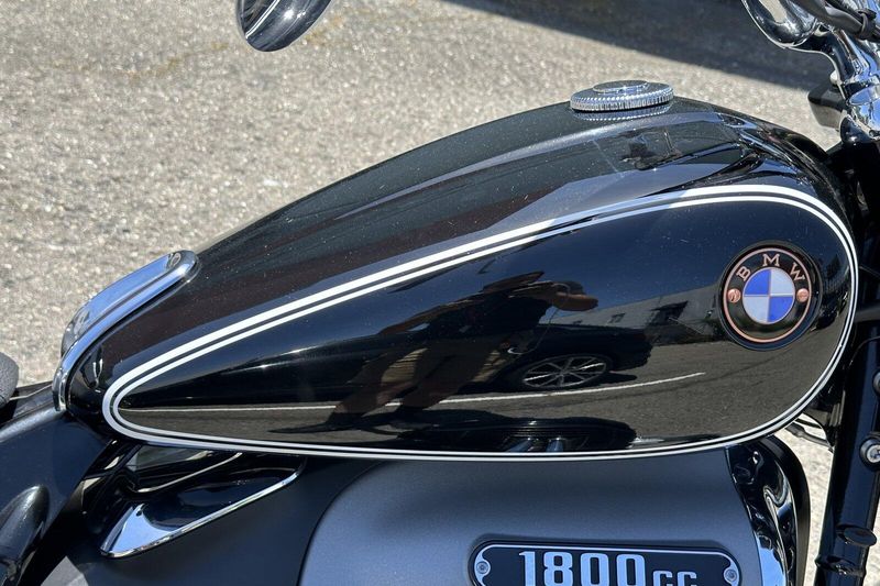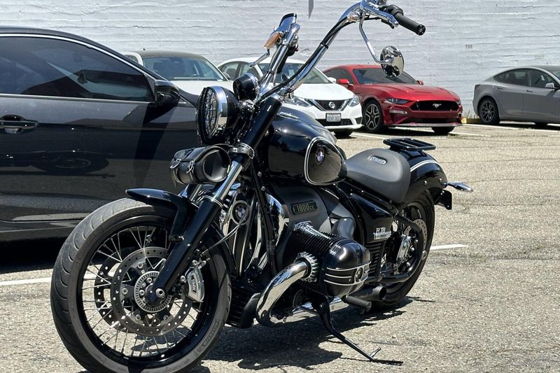 The 2021 BMW R 18 First Edition is a cruiser motorcycle that mixes classic style with modern power. It has a huge 1,802cc two-cylinder boxer engine—BMW’s biggest ever—making 91 horsepower and 116 lb-ft of torque. Its design is inspired by BMW’s old 1930s R 5 model, with black paint, white pinstripes, lots of chrome, and “First Edition” badges. It also has an exposed driveshaft and a vintage-style frame. While it looks old-school, it includes modern touches like LED lights, three riding modes (Rain, Roll, and Rock), and optional features like reverse assist and hill start control. With a low seat and a heavy, solid build, it offers a relaxed but powerful ride that stands out for its bold look and smooth performance.