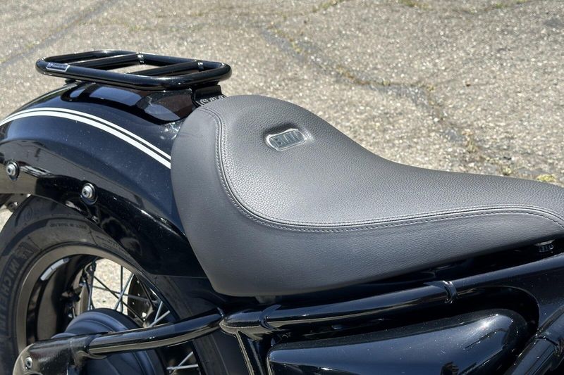 This one takes things a bit further with BMW Ape handlebars, we installed them, a solo seat, luggage rack and an exhaust you need to hear. It has other touches you need to see. Overall, this is a one-of-a-kind ride. We serviced it in May, the 6000-mile service, so it's good for another 6000 miles.